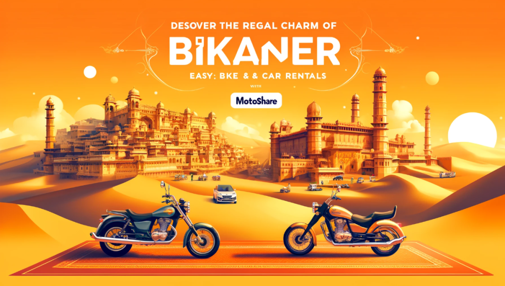 Bikaner, the enchanting city of Rajasthan, is a destination renowned for its stunning palaces, vibrant culture, and mouth-watering cuisines. From the majestic Junagarh Fort to the serene sand dunes, Bikaner has a lot to offer. With Motoshare, you can now explore this historic city with complete ease. Motoshare’s newly launched bike and car rental services let you rent vehicles directly from owners, giving you the freedom to travel on your terms