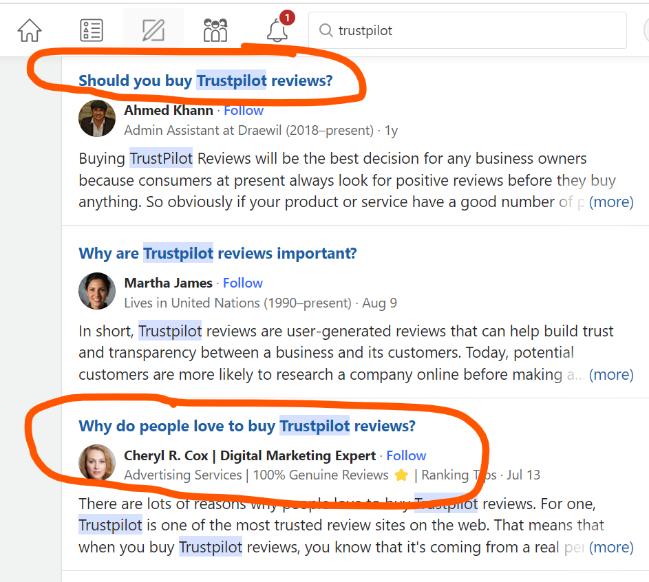 Step 1 – First, Trustpilot would publish some of the fake review on their websites