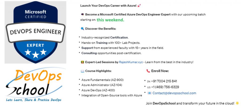 š Become a Microsoft Certified Azure DevOps Engineer Expert with our upcoming batch starting on November 18, 2023.