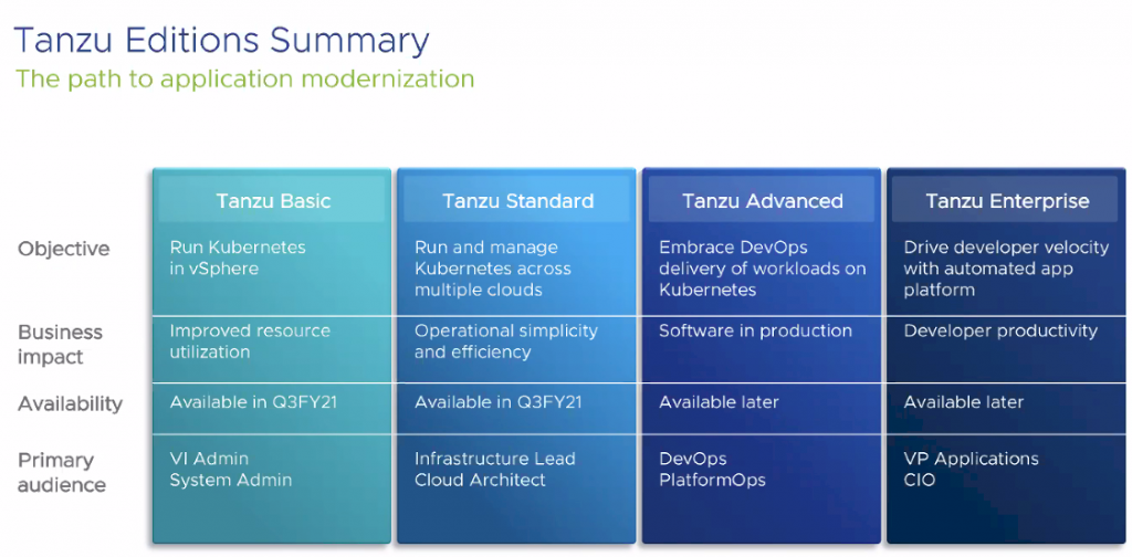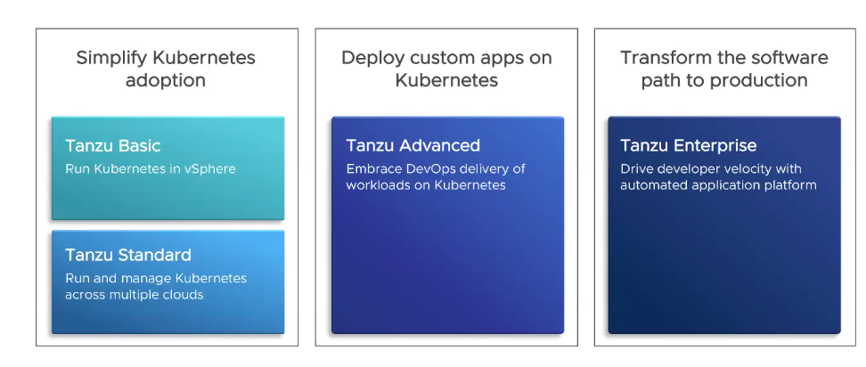 VMware Tanzu offers three editions today that can simplify your Kubernetes adoption and lay the foundation for modern applications. Choose the one that best suits your needs
