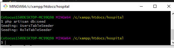 Step:22– Make RolesTableSeeder file for insert data in roles table through migration and run this code in your git bash cammand. php artisan make:seed RoleTableSeeder