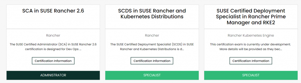 Candidates who achieved the SCA in SUSE Rancher 2.5 by passing the core SCA in SUSE Rancher 2.5 exam have also been awarded the 2.6 certification and do not need to re-certify.