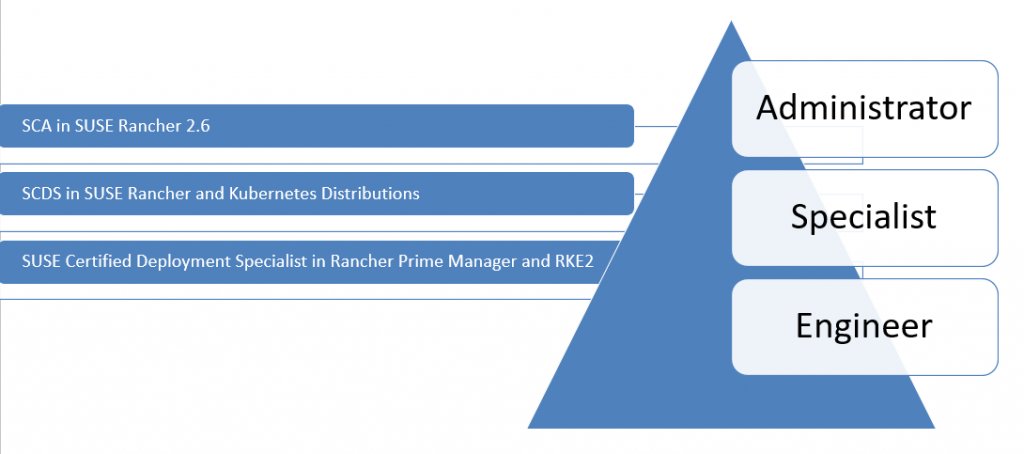 The SUSE Certified Deployment Specialist (SCDS) in SUSE Rancher and Kubernetes Distributions is designed for DevOps and Deployment Engineers and System Administrators. It demonstrates knowledge of how to deploy Kubernetes clusters with RKE, RKE2 and K3S, both from the command line and from SUSE Rancher. This certification also demonstrates knowledge of how to deploy SUSE Rancher on Kubernetes, how to backup and restore RKE and RKE2 clusters from the command line and back up RKE with SUSE Rancher.