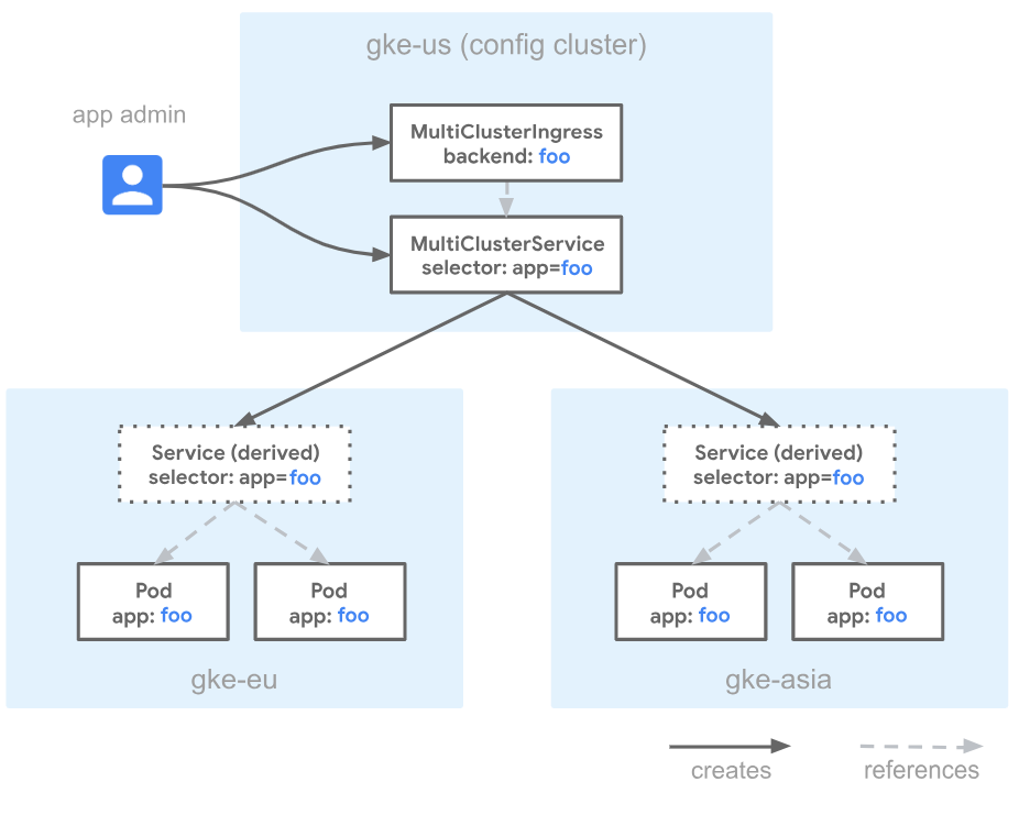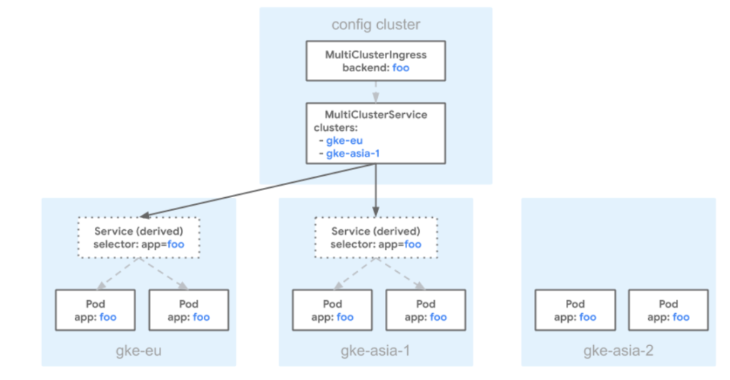 - Ingress Configuration: Each cluster has its own set of resources and services that need to be exposed externally. With MCI, you configure ingress resources that are aware of the multi-cluster environment.