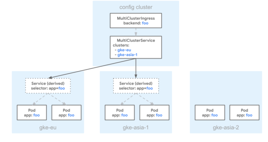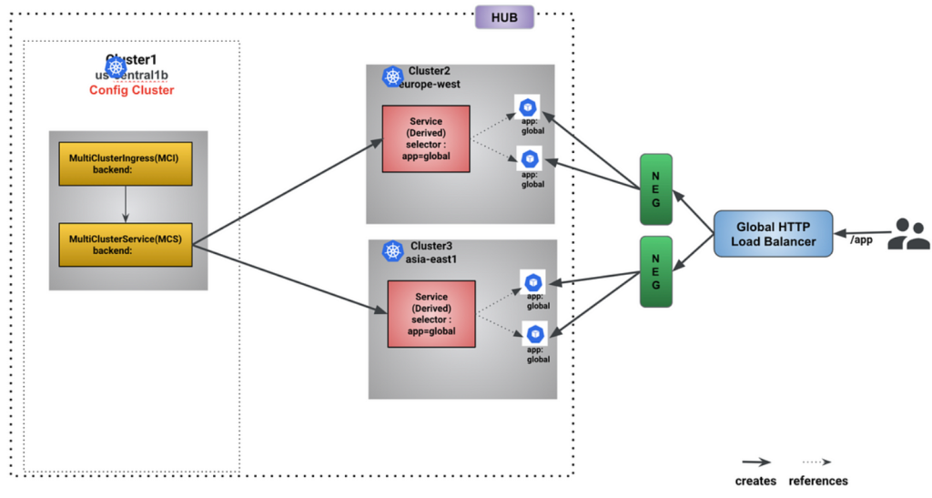 - DNS and Global Load Balancer Setup: MCI integrates with global load balancers and DNS systems to direct users to the closest or most appropriate cluster based on various criteria like location, latency, and the health of the clusters.