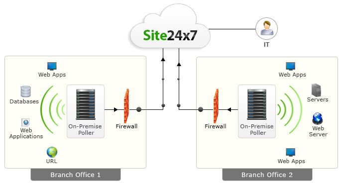 Overall, Site24x7’s architecture focuses on collecting comprehensive data from various sources, analyzing it intelligently, and presenting it in a way that empowers users to proactively manage their IT infrastructure and ensure optimal performance.