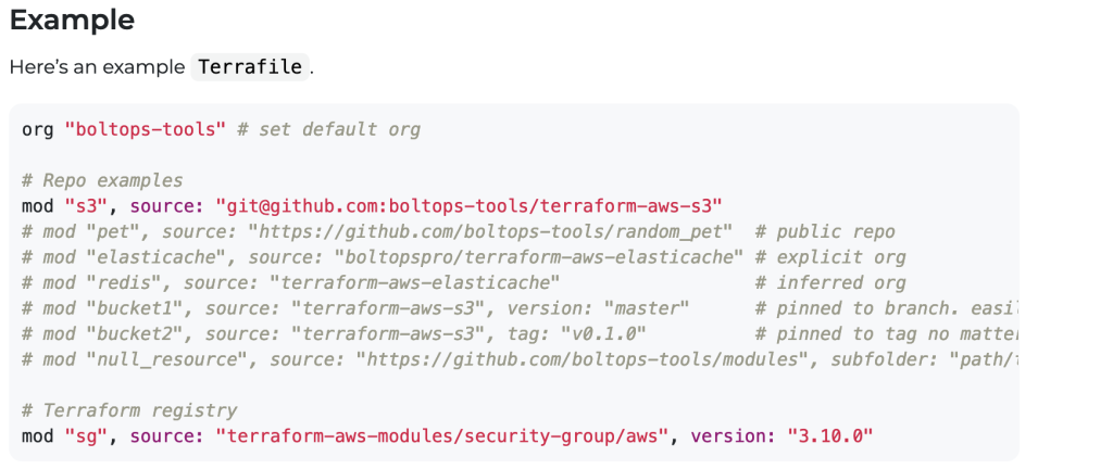 - Minimal Configuration: Terrafile is lightweight and doesn’t require complex setup or configuration. It’s primarily concerned with pulling module dependencies.