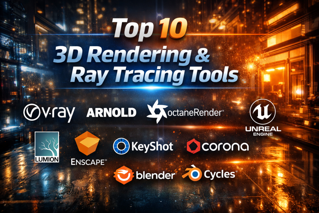 3D Rendering & Ray Tracing tools are essential for transforming ideas into compelling, realistic visuals. While some tools excel in cinematic realism, others shine in real-time performance or ease of use. The best choice depends on your industry, budget, hardware, and creative goals.