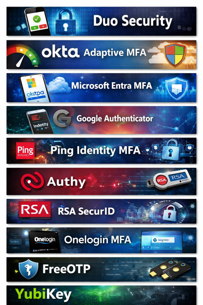 - Enterprise: Okta, Ping Identity, Microsoft Entra MFA