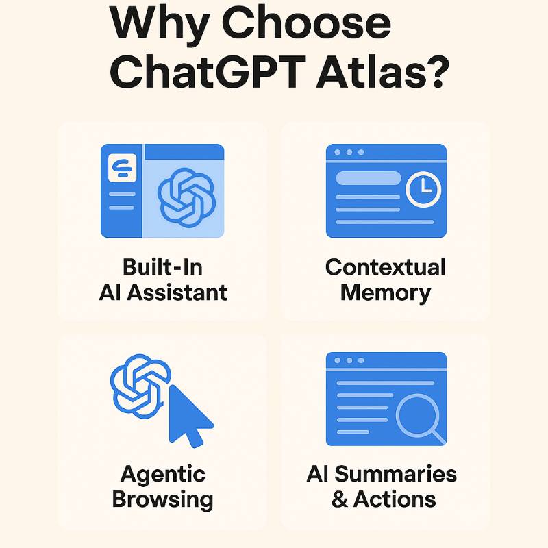 - What: ChatGPT Atlas = a browser built by OpenAI, with ChatGPT deeply integrated.