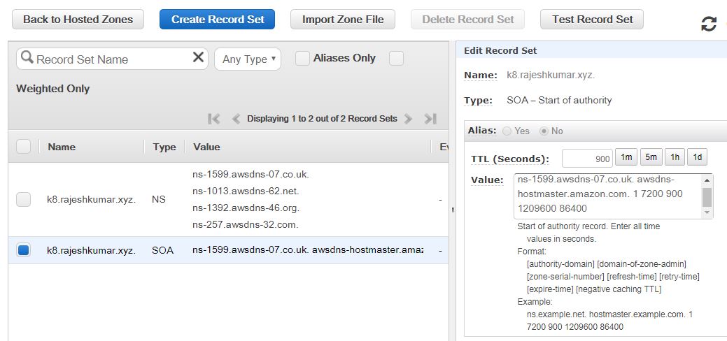 and in our subdomain, k8.rajeshkumar.xyz, create a new recordset of type A, Alias=Yes,